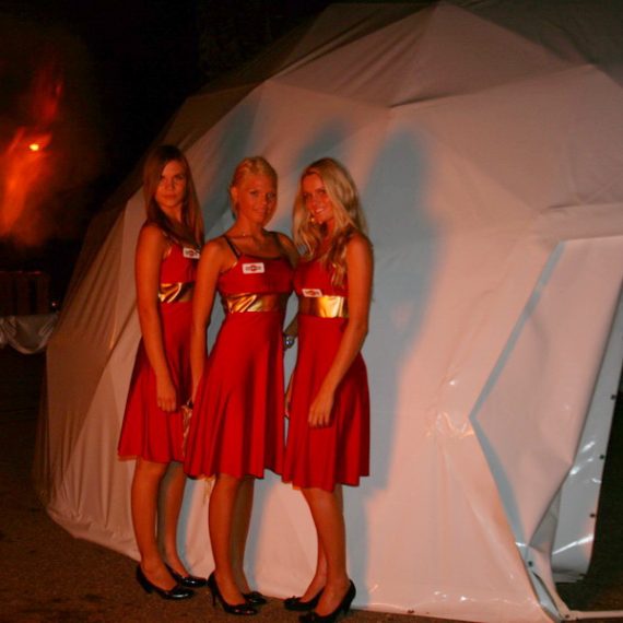 Les scènes sous dôme peuvent également être équipées d’une couverture ou d’une housse pour DJ.