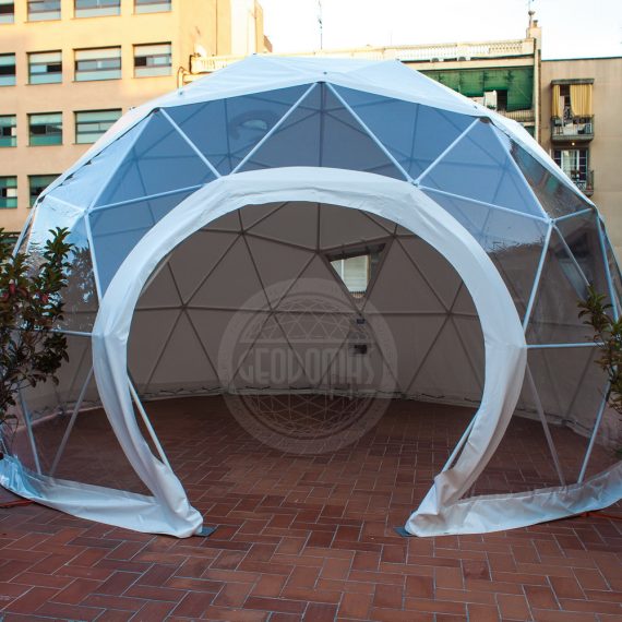 Les revêtements des pavillons-dômes sont fabriqués dans divers matériaux en fonction de vos besoins. Tous les revêtements sont ignifuges et durables, et un large choix de couleurs permet d’adapter le dôme à vos préférences esthétiques. Geodomas peut également concevoir et fabriquer un revêtement personnalisé selon vos exigences.
