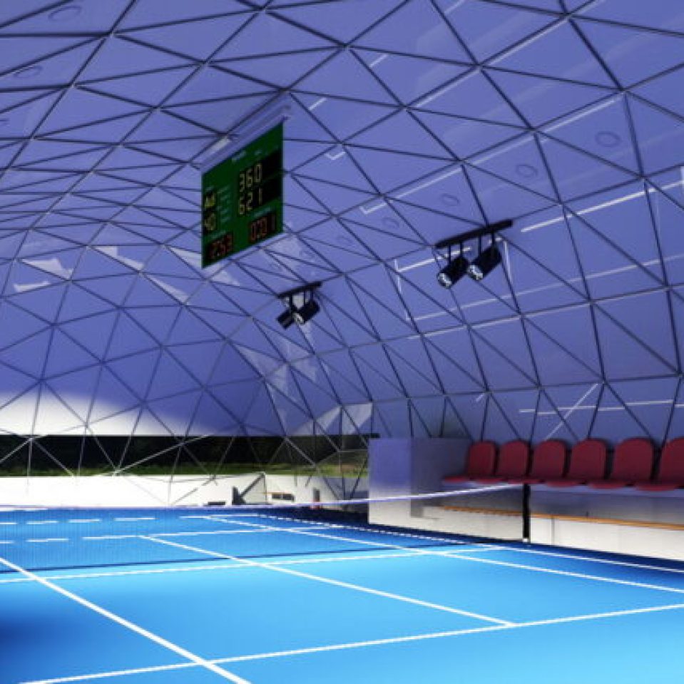 Glamping domes designed for sports roofs offer an innovative solution that provides optimal conditions for sports facilities through advanced multi-layer wall technology. These domes can be utilized for covering tennis courts, swimming pools, football fields, and other sports venues.