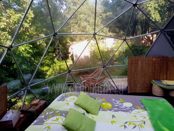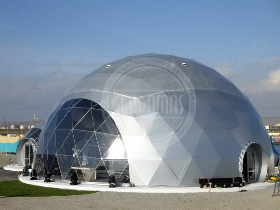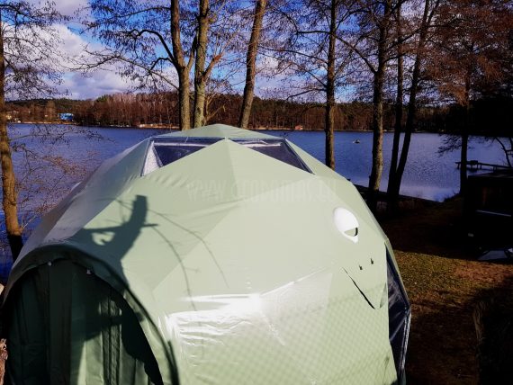 Pro kupolo langą galima stebėti saulėlydžius. Kupolas pritaikytas oro temperatūrai nuo -30 iki +80 laipsnių Celsijaus nes turi THERMIC.PRO terminę membraną. Šio sezono pristatymas, 8 metrų skersmens 50 m2 ploto kupolas – “GLAMPING DOME”.