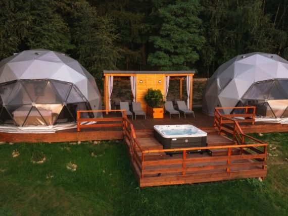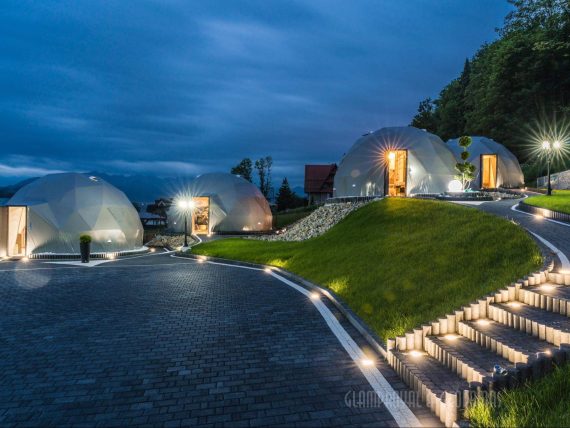 35m² x4set Glamp Royal Resort – Ø6,7m kupolai | Zakopanė, Lenkija