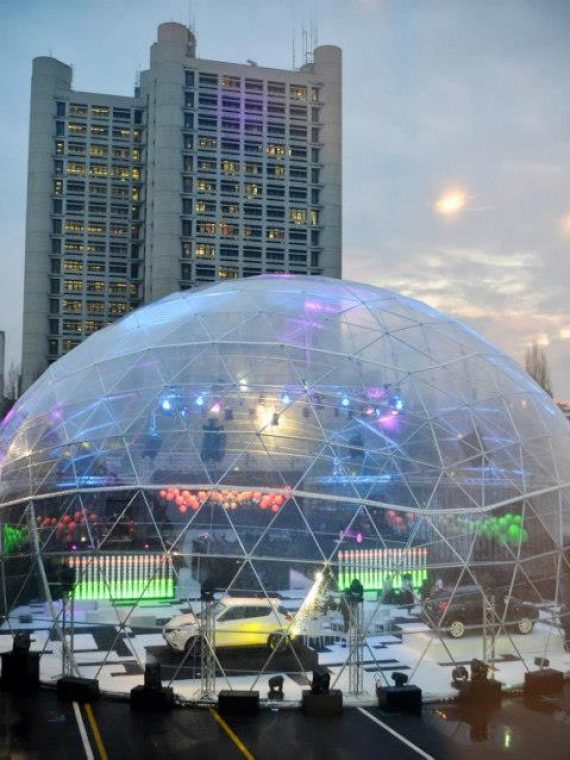 Naujo Nissan modelio Juke pristatymui suprojektuotas ir pagamintas didžiūlis kupolas-paviljonas.