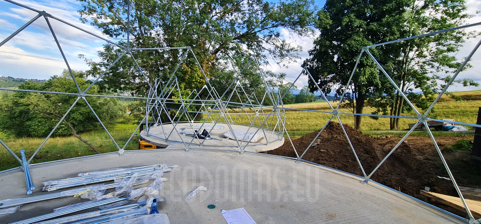 🏗️ Struktūra: Geodezinė konstrukcija iš cinkuoto metalo