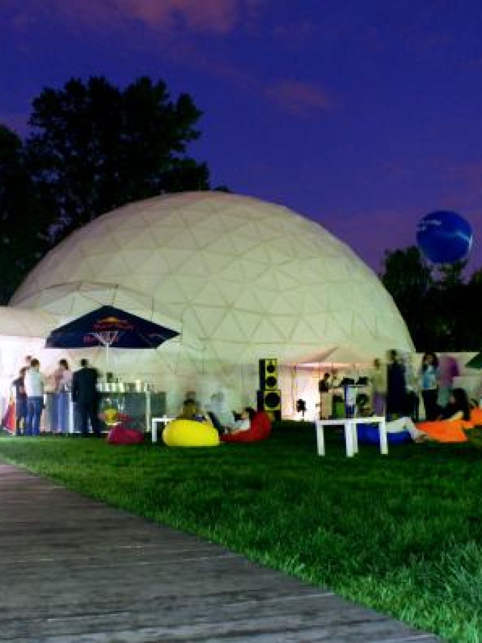 The dome is placed VO3DUH Àrt in part of the garden which is artistically organized an open-air space with a stationary scene. The area is located in the park area and is designed for performances, concerts, festivals, parties, theatrical performances, etc.