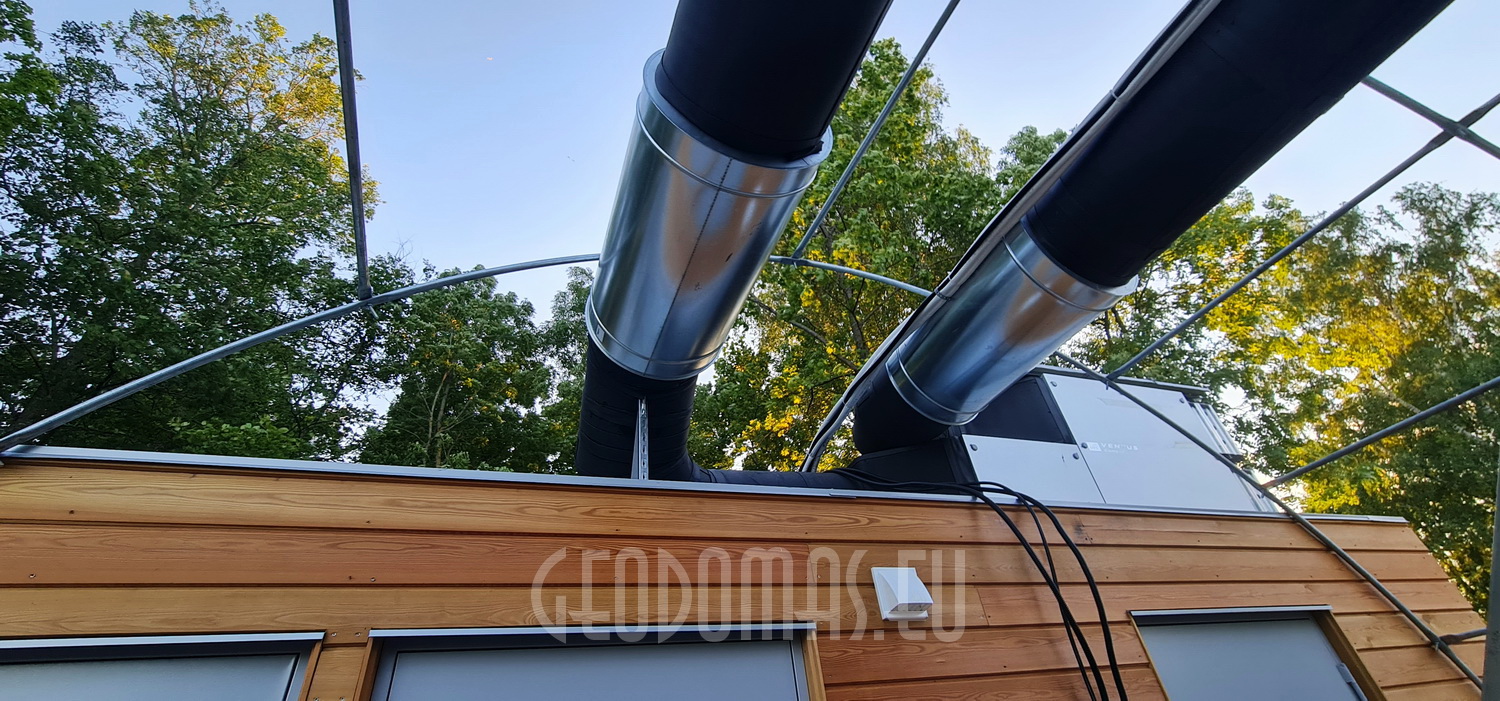 Viršutinės angos oro išleidimui, apatinės oro padavimo angos. Skylės yra izoliuotos nuo nutekėjimo.