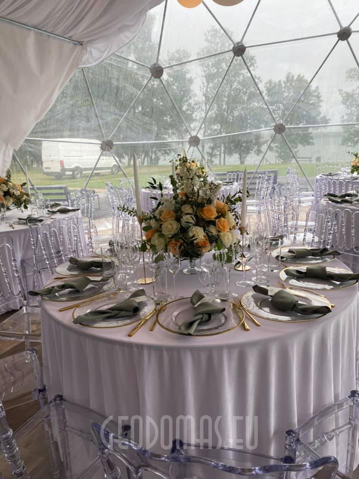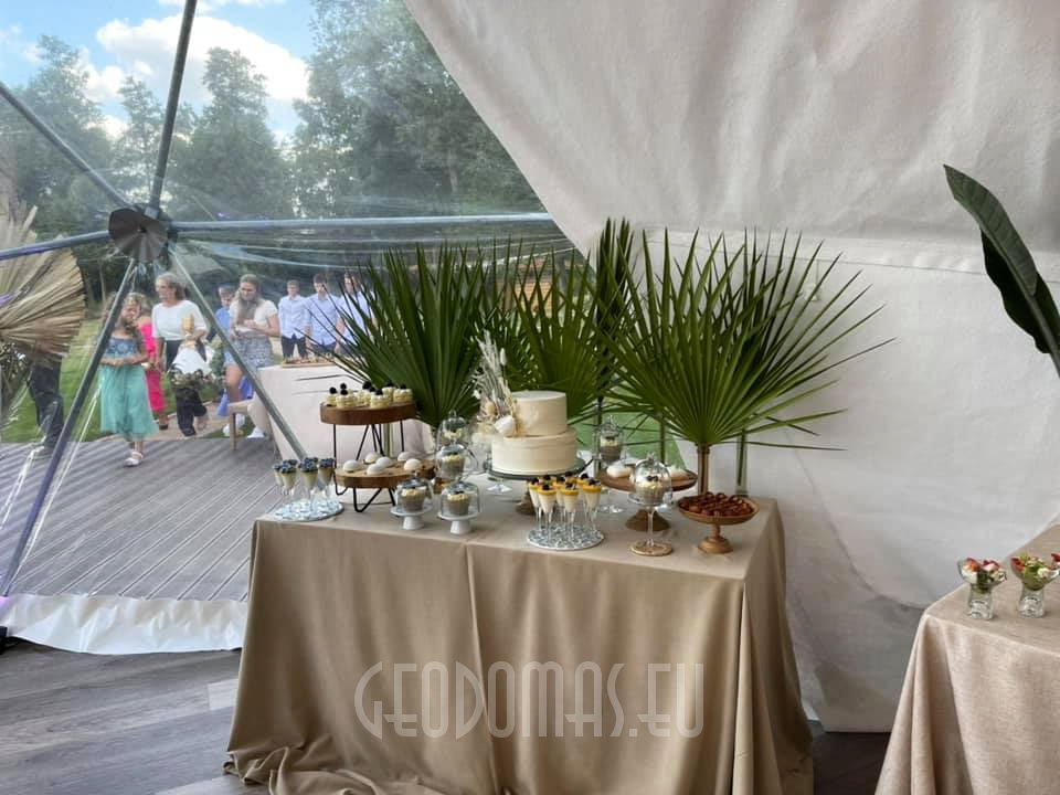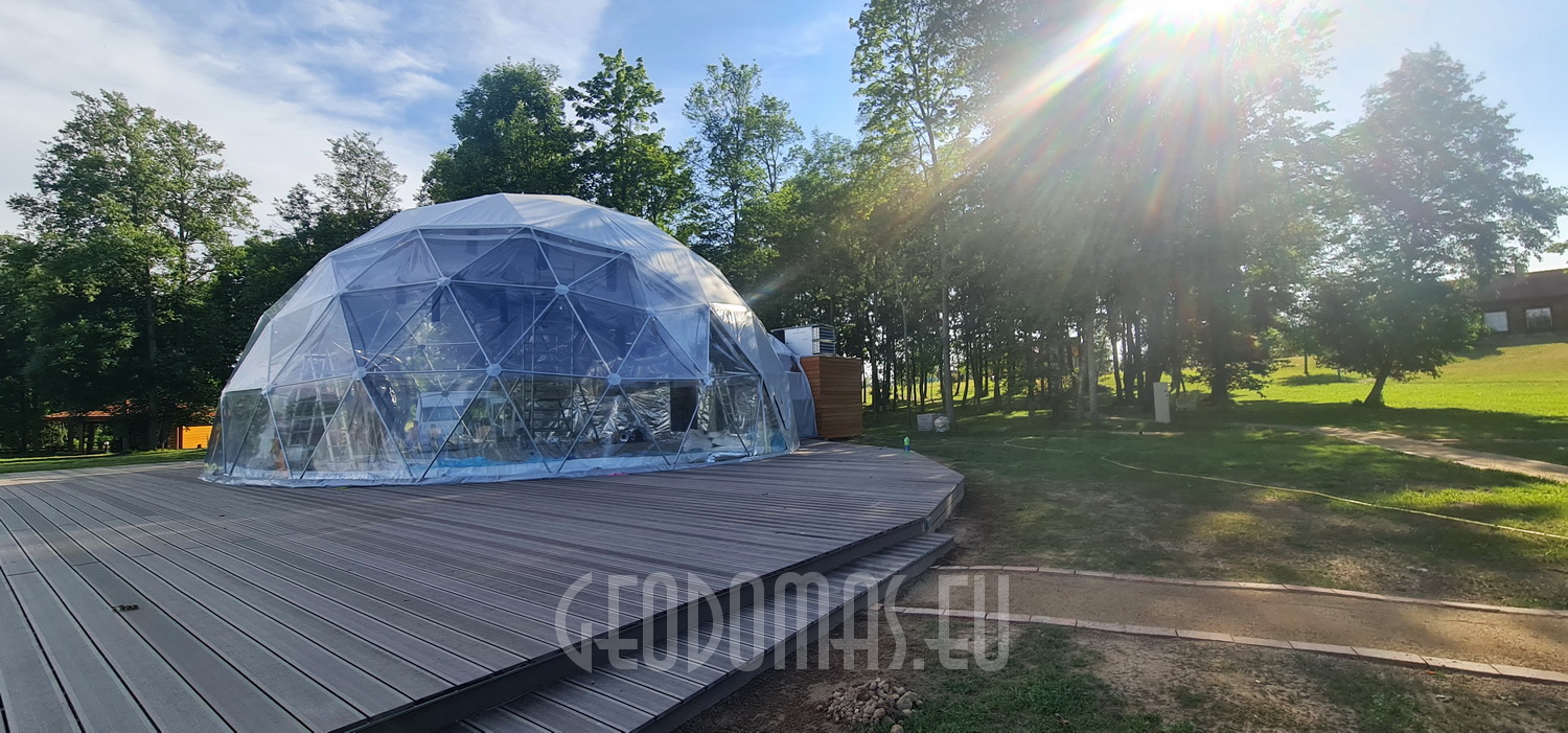 Panoraminė PVC lango membrana tonuota, skirta naudoti „Glamping“ tentui. Skaidrus PVC audinys, puikiai praleidžiantis saulės šviesą ir apšviečiantis visą kupolą..