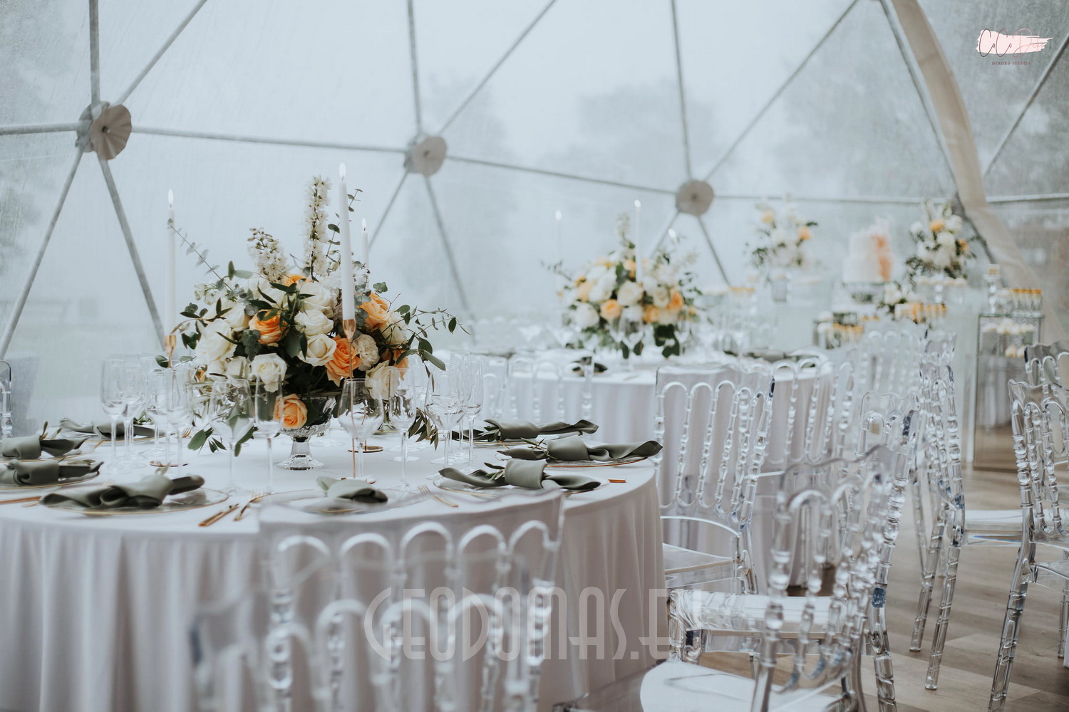 Geodeziniams kupolų uždangalams naudojame aukščiausios kokybės PVC tentų audinius. Visi mūsų audiniai yra sertifikuoti ir atitinka Europos kokybės ir atsparumo ugniai standartus. Nuimama kupolo danga yra žinoma dėl savo privalumų ir ilgo tarnavimo laiko. Dėl dažno audimo medžiaga yra atspari pradūrimams, įbrėžimams ir įpjovimams. Labai lengva išlaikyti kupolo uždangalus švarius. Patvarūs “GEODOMAS” uždangalai yra įvairių spalvų, atsparūs pelėsiui ir apsaugoti nuo UV spindulių ir atsparūs ugniai. Visi audiniai turi ugniai atsparius sertifikatus NFP 92507: M2; DIN 4102: B1; EN 13501-1: B-s2-d0, BS 7837.