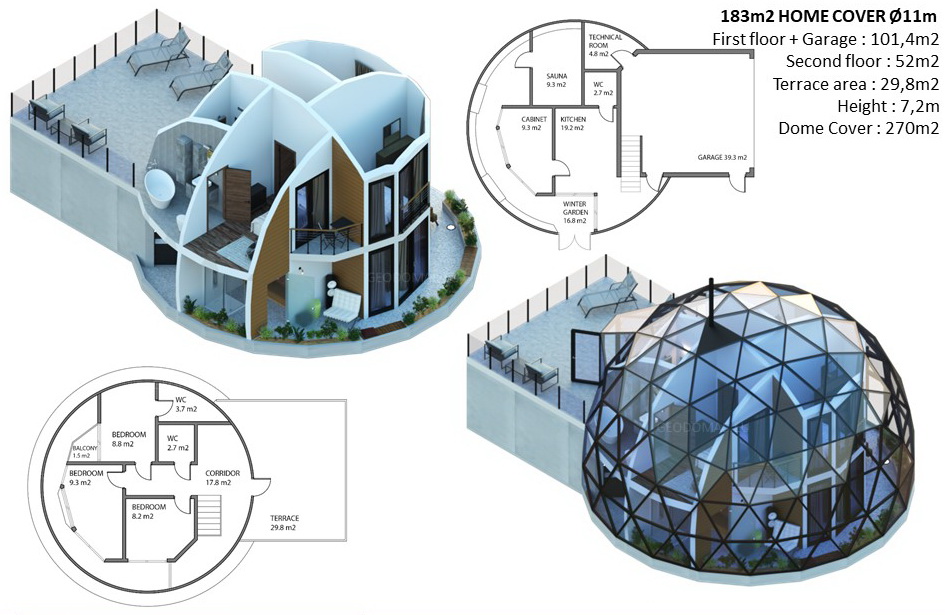 Each geodesic dome structure is designed according to load calculations. This in turn ensures safety and durability. Our structural engineers can calculate the maximum loads of the equipment suspended by the geodesic dome of regional norms