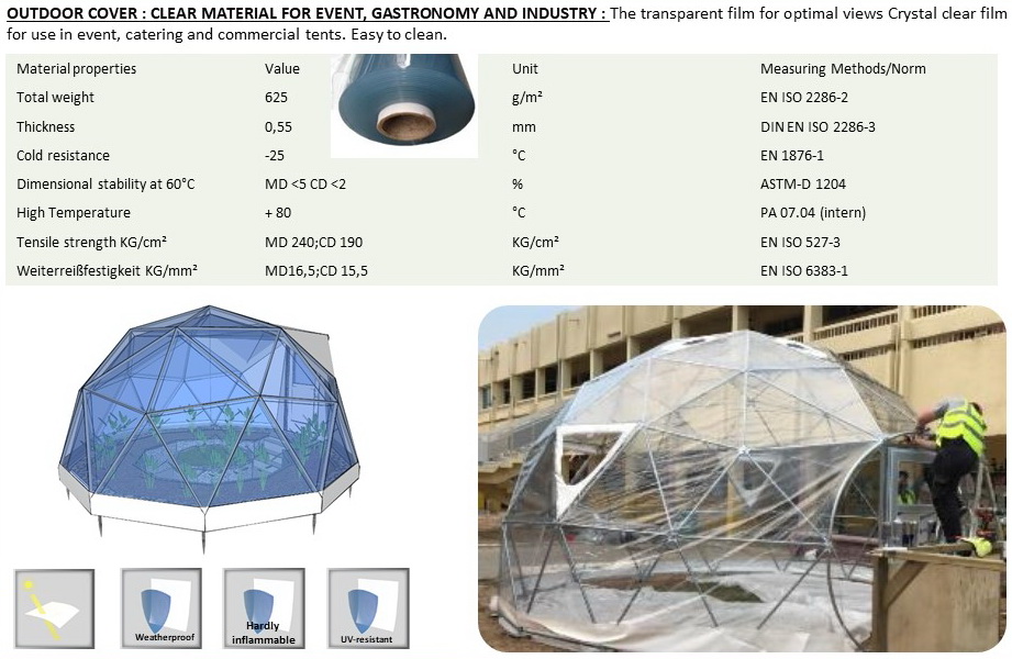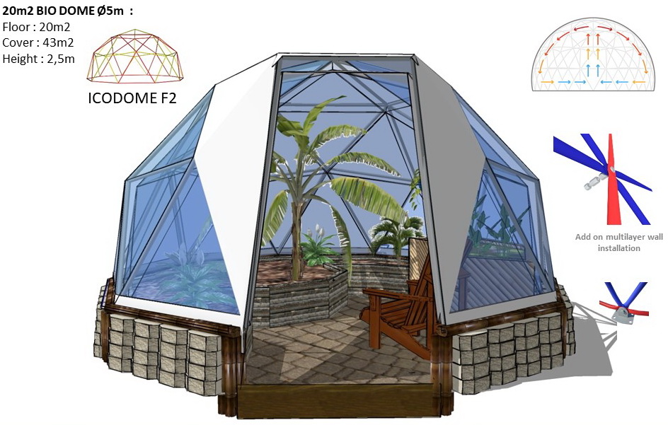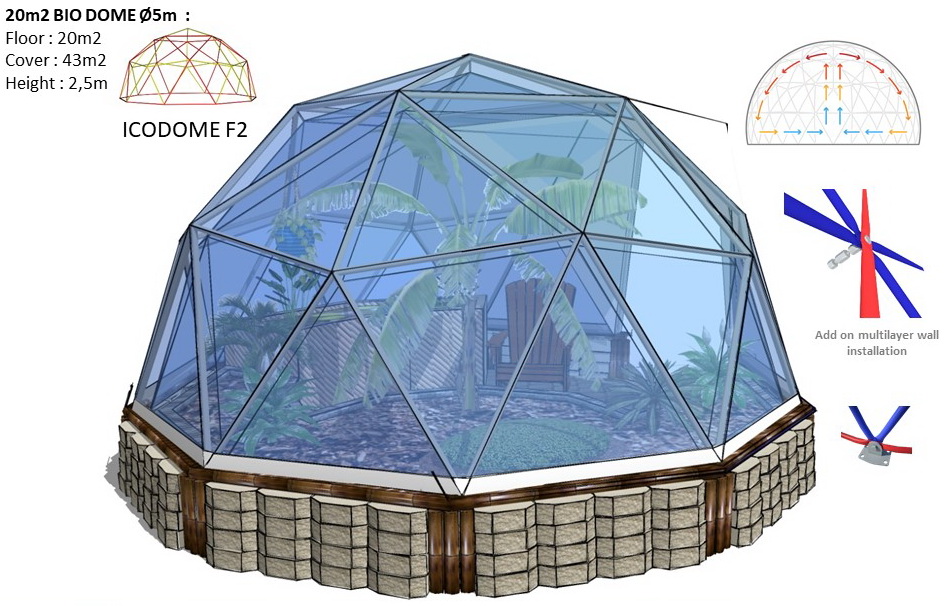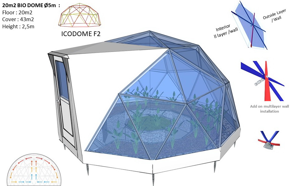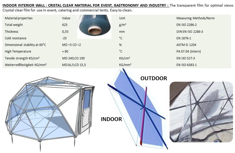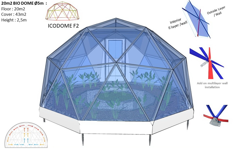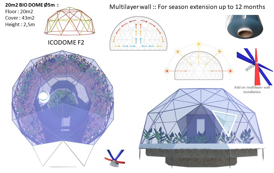 The INDOOR tension multilayer wall creates a 15cm air chamber. This technology allows you to insulate your dome. The air space is constantly ventilated by flows of natural ventilation. Multilayer wall will extend the season of the dome for the whole year.
