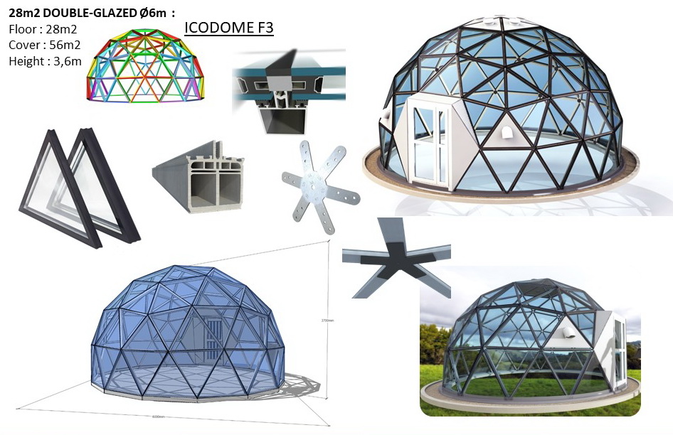 Konstrukcijos karkasas gaminamas iš aliuminio konstrukcinių profilių dalių, skirtų konstrukciniams fasadams, dalis sudaro sandarinimo guma, tvirtinimo rinkinys. Plieninės jungiamosios stebulės: STAR tipo – 4-5-6 krypčių, dažytos milteliniu būdu. Plieninių WURTH kniedžių rinkinys 6,4 mm, skirtas karkaso konstrukcijai.