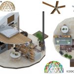 Trikampės formos plokštės, fasado plokštės COSMO PLOKŠTĖS : 25mm (pagrindinis variantas), PVC-XPS-PVC plokščių struktūra. Tvirtinimo elementai plokštėms su tarpine. Montavimo klijų rinkinys sandariklių apdorojimui. Baltas fasado sandariklis-klijai apdailos ir dekoratyviniams darbams. Skardinė perimetro palangė pamatų hidroizoliacijai. Gravitacinė vėdinimo sistema apatiniame kupolo perimetre. Pilnas montavimo komplektas ir fasado surinkimo dokumentacija.