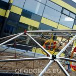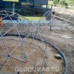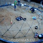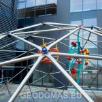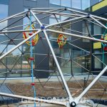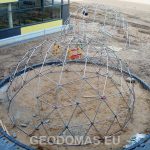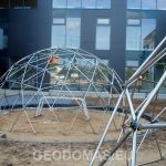 Metalinė, cinkuota sferinės formos konstrukcija | Kupolo formos paviljono rėmas pagamintas iš cinkuoto plieno, vieno varžto jungtys, apatinės jungtys kupolo tvirtinimui.