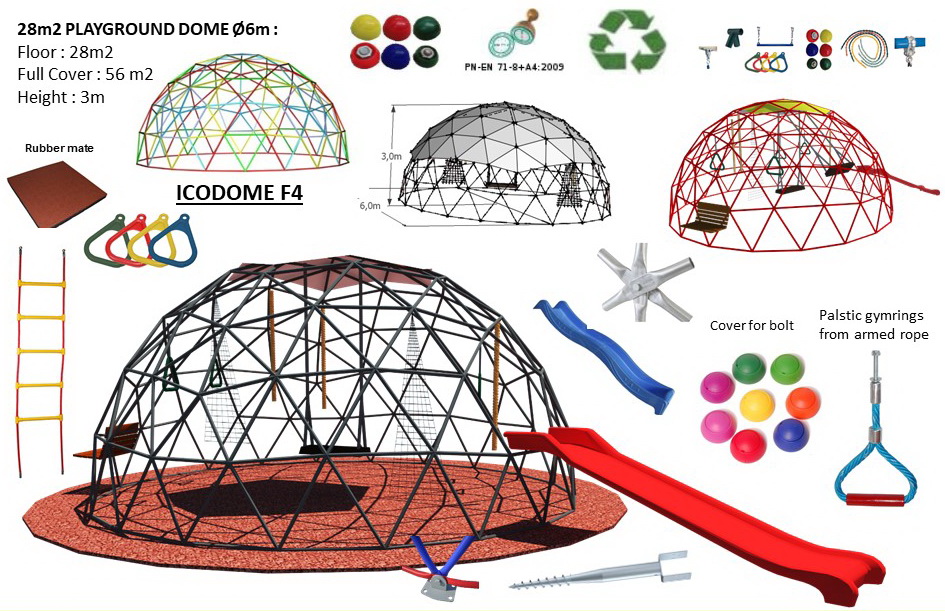 Kupolo formos žaidimų aikštelės yra ilgalaikės. Rėmas gali būti naudojamas iš įvairių medžiagų: