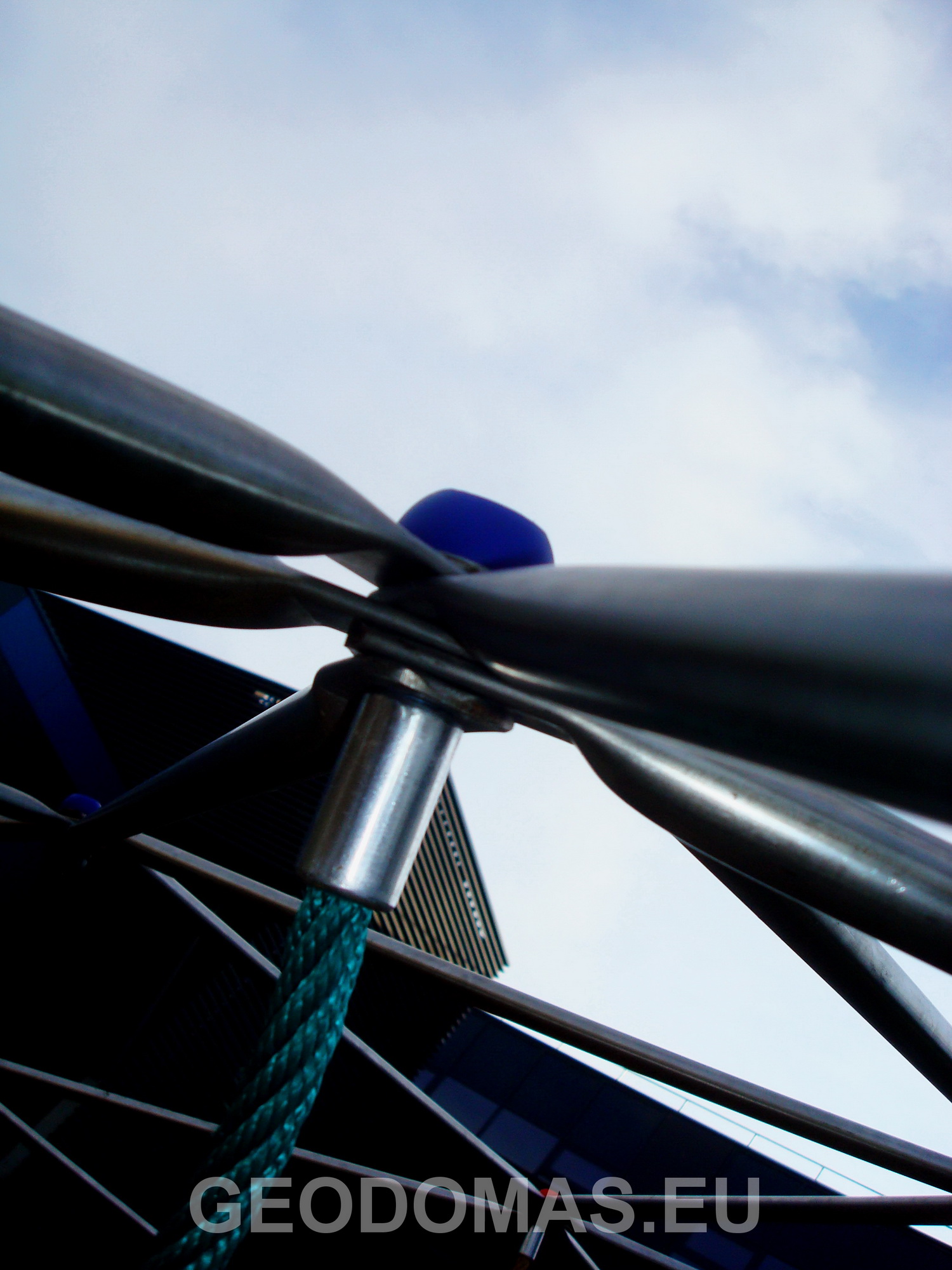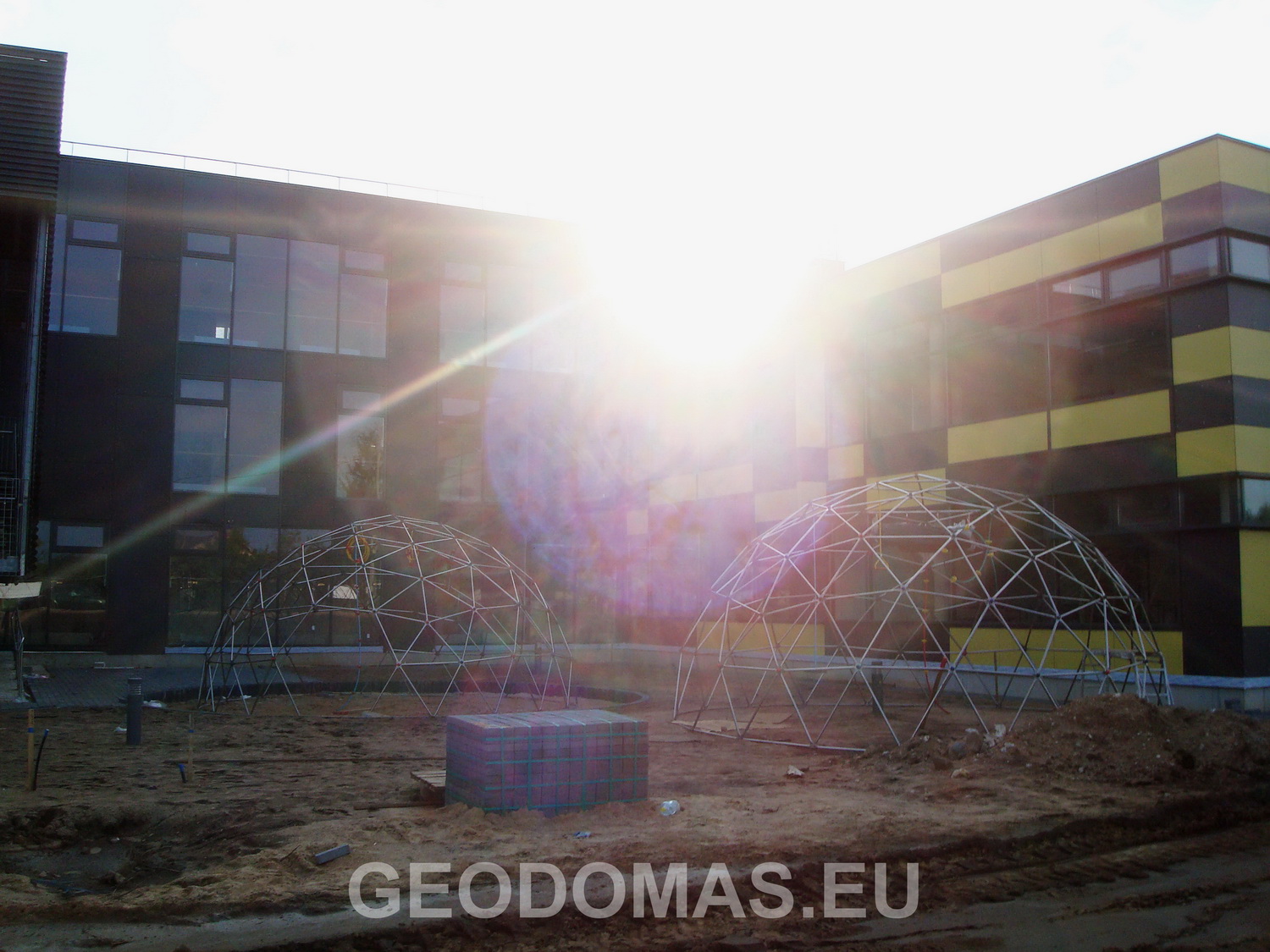 Metalinė, cinkuota sferinės formos konstrukcija | Kupolo formos paviljono rėmas pagamintas iš cinkuoto plieno, vieno varžto jungtys, apatinės jungtys kupolo tvirtinimui.