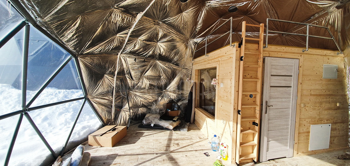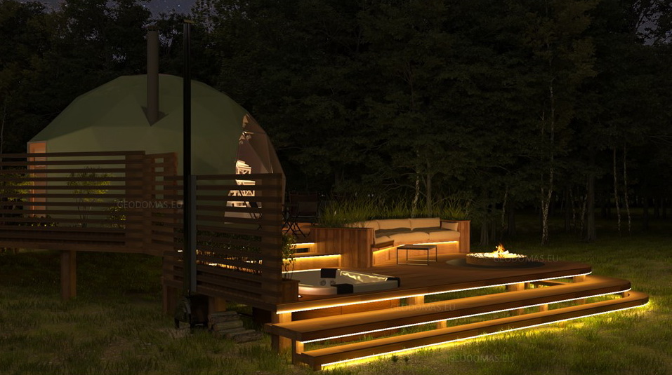 The geodesic dome structure allows you to create a light, well protected and very stable space. The main advantage of geodesic domes is the even distribution of stresses in all frame nodes.
