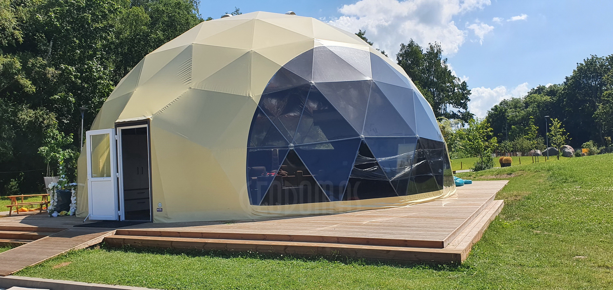 Glamping Domes do not require any columns, load walls or columns inside to allow the customers to use the maximum available area. By using steel structural elements structure becomes sustainable in terms of weather factors, livetime and loads.- The structures can be connected with tunnel paths;